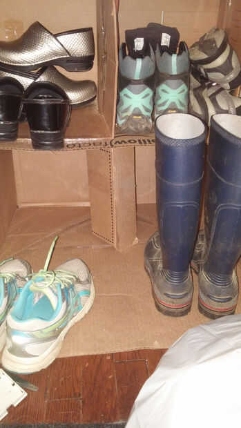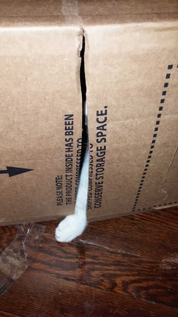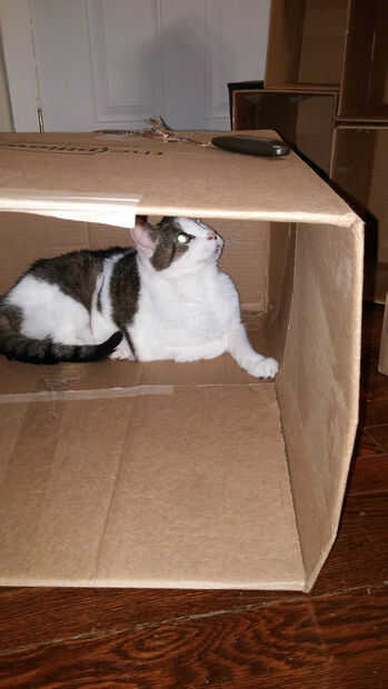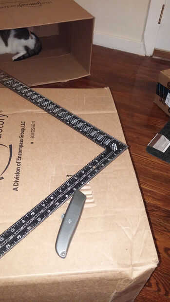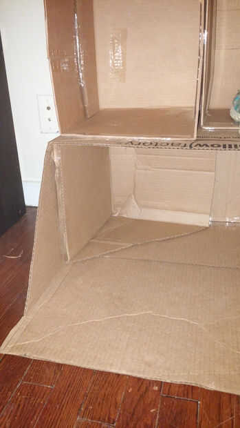 En segundo lugar, tomar su caja extra base y corte 2 esquinas de buen tamaños. Si un gato le está ayudando, asegúrese de que gato no es dentro de la caja cuando se corta. Luego, tomar las piezas de esquina y empujar dentro de las esquinas de la caja base real - esto refuerza la base y es suficientemente fuerte para soportar las cajas superiores una vez que se amontonan los zapatos/suciedad/olores.