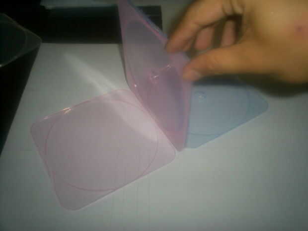 pila de todos los casos de cd junto con la base hacia abajo. Coloque juntos la base parte de un cd al lado de la cubierta de la caja del cd.