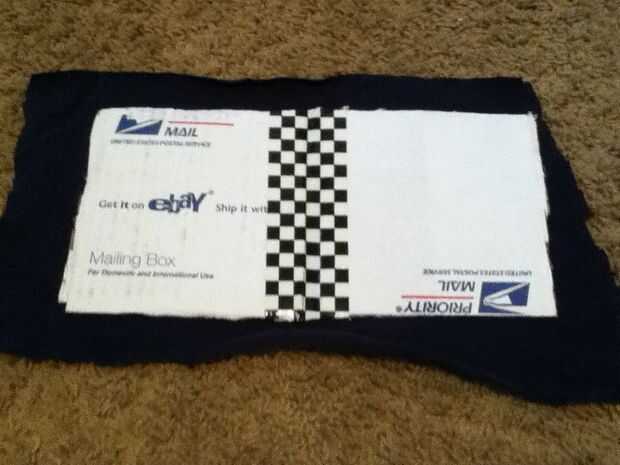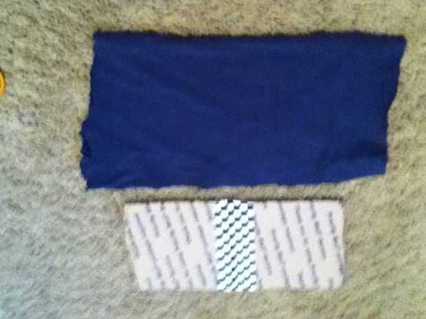 Ahora sólo cortar un trozo de tela más o menos el tamaño de la Junta de la tarjeta. Por lo menos deberían dejar sobre una mitad de pulgada que no está en el cartón por todos lados. Luego pégala a la cartulina