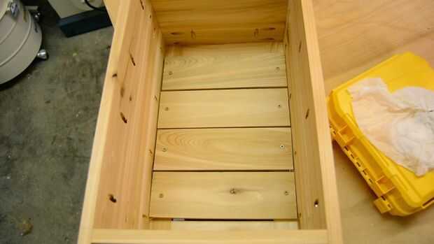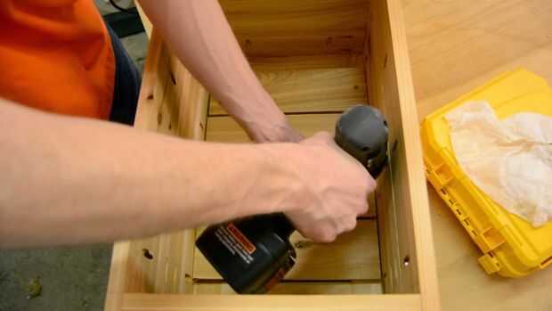 Corté el marco para el ajuste alrededor de la parte inferior después de Asamblea y de la misma manera para los listones, medir sólo una vez la caja es construida y cortar para caber. Para hacer que el perimetral de marco arrancó un 1 × 4 por la mitad de la tabla VI. He montado el marco con tornillos de bolsillo y entonces conectado a la caja con el mismo método.