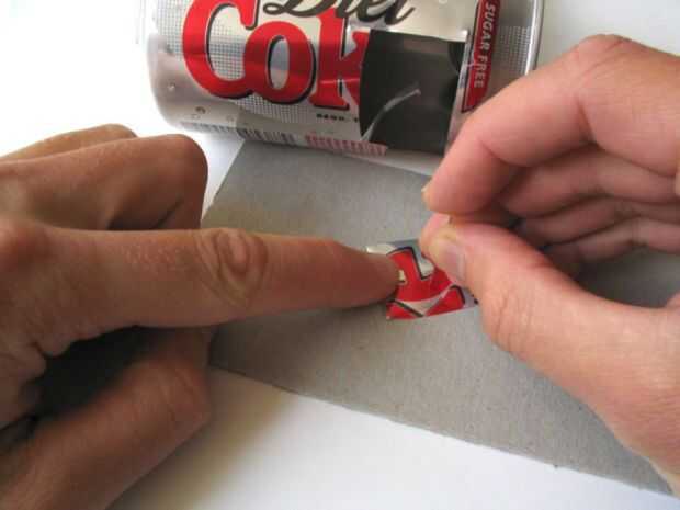 -Cortar un cuadrado de 1" de las bebidas de aluminio puede.