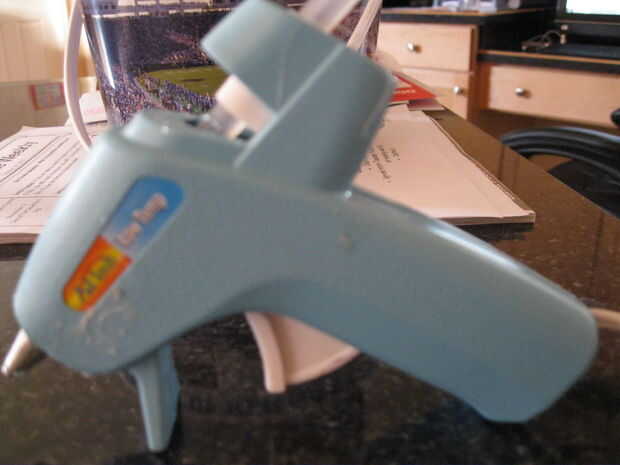 Usando una pistola de pegamento caliente, pegar la parte de corte de la caja de cerillas en la parte inferior de la lata.