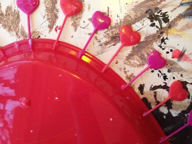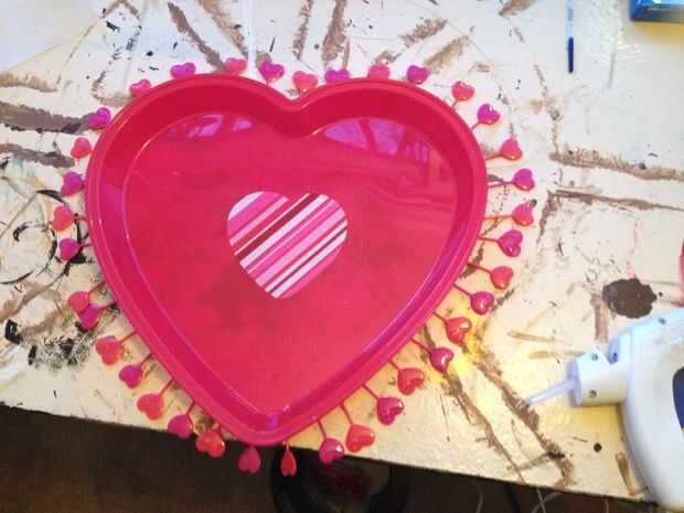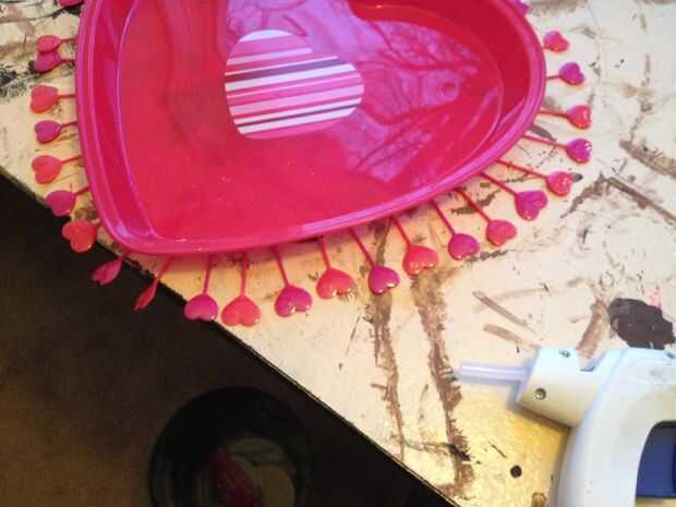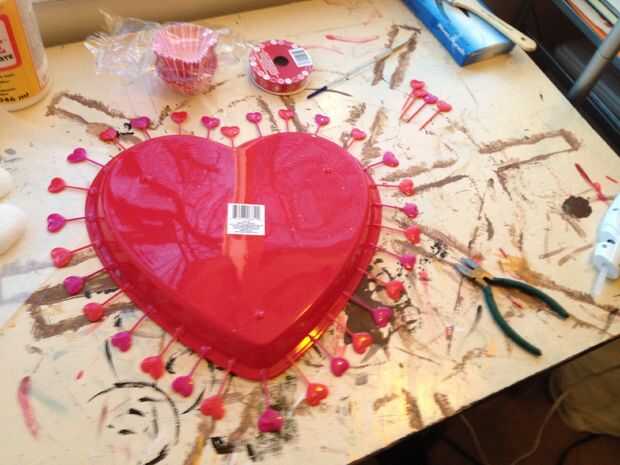 Para la base de la corona, también se conocer como "La vida es una caja de Chocolates", tome el plato en forma de corazón y las selecciones de la Magdalena. Organizar las selecciones debajo del borde de la parábola para visualizar cuantas selecciones necesita y dónde colocarlos.