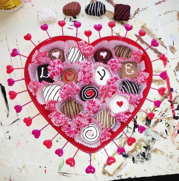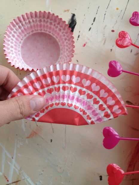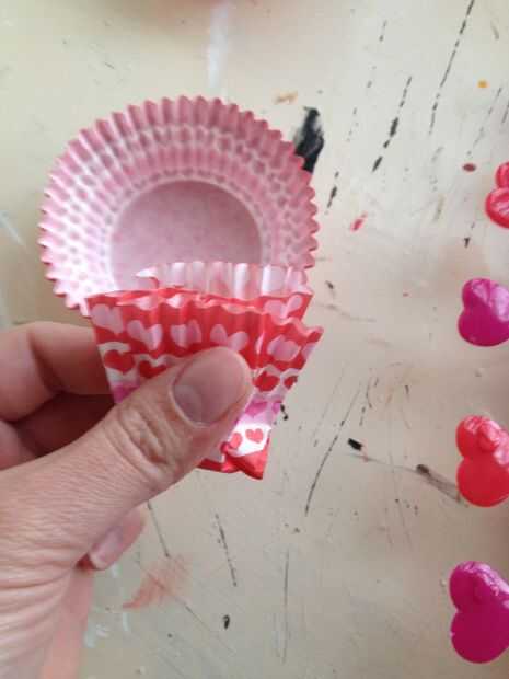 Poner un poco de pegamento caliente en la parte inferior de la camisa arrugada, para rellenar espacios vacíos en tu caja de bombones. Deje que se enfríe.