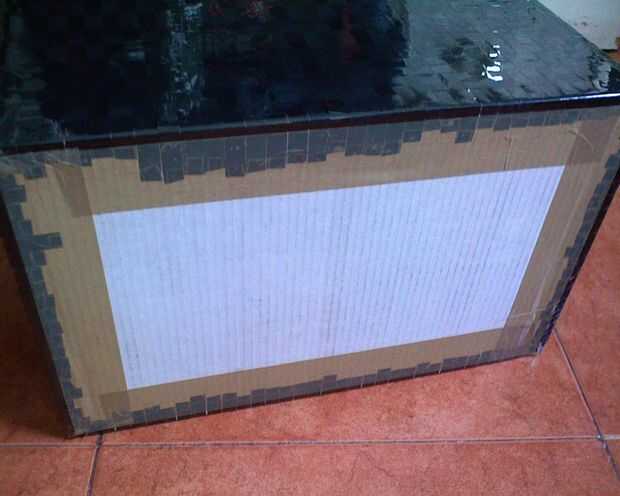 Para nuestra escuela tuvimos que hacer algo a partir de una caja de cartón corrugado a un producto que puede utilizarse para otra cosa. Una caja existentes que hay que cambiar un poco a otro nuevo producto.Combina una caja de cartón corrugada (usada)