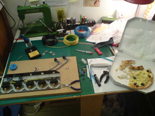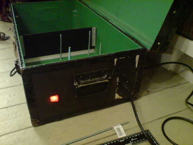 a continuación soldado todos los cables y poner juntas las partes externas de la caja del interruptor con el perfil de L un los remaches. La caja del interruptor se montó en el caso de los perfiles en L y oh maravilla funciono :-)
