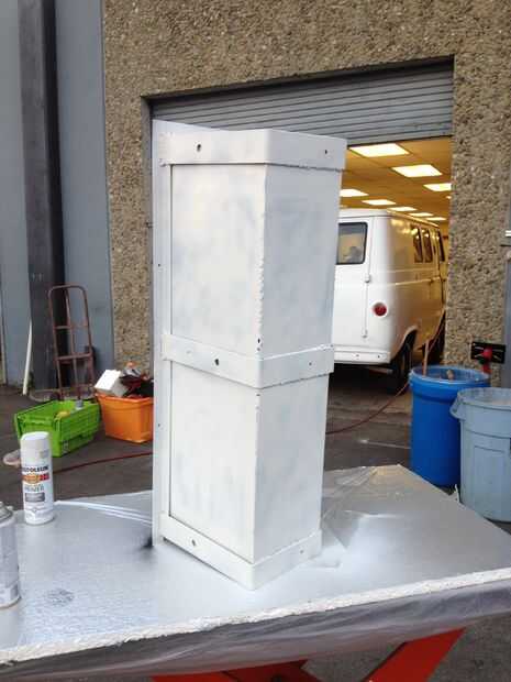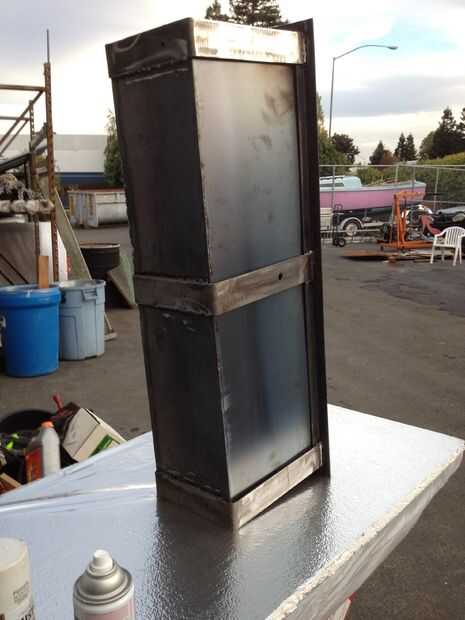 I rattlecan primered la materia prima acero con blanco desde que era lo que tenía en mi caja de pinturas, entonces apliqué negro mate. Tenía originalmente la intención powdercoat todo pero eso requeriría un poco de chorreo de arena. Óxido Oleum es bastante durable y perdonando de preparación imperfecta. También puedo sellar la caja posteriormente con algún tipo de recubrimiento ahulado o quizás una pintura esmalte grueso. Deje que se seque. Caer en probar el ajuste y acabado. Si hiciste la profundidad entre 10.5 y 11 pulgadas apenas sería visible debajo del panel del eje de balancín si usted ponerse en cuclillas hacia abajo para ver lo. A esa profundidad si debe poder sostener una batería de coche estándar.