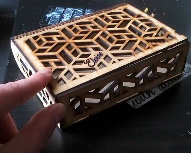 Me encanta hacer cajas con el cortador del laser. El cortador del laser hace que las piezas de la caja de corte fácil y preciso. Por una serie de lengüetas y ranuras en el borde de corte, las piezas encajan tan bien que casi no necesita pegamento par