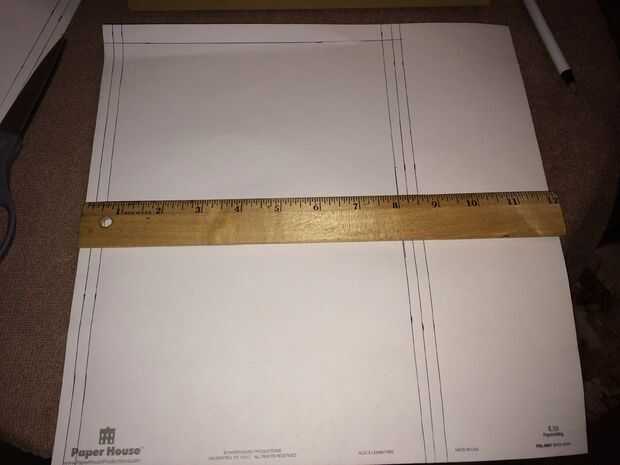 Será también necesario 2 hojas 11 "x 8 1/8" con 1/2" de superposición en cada borde. Estas 4 hojas serán para la parte inferior de la caja.