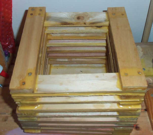 Una simple caja de cuñas de madera baratas.Este proyecto puede hacerse durante un período prolongado de tiempo ya que toma tiempo para que el pegamento seque y establecer.Paso 1: partes 1. 4 paquetes de cuñas de madera (más si usted lo desea en el cu