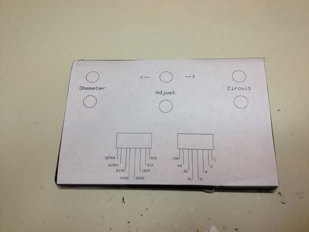 Necesitaba una resistencia variable con una gama muy amplia de resistencia, de 1 ohm a 10 megohms.Tenía un conjunto de interruptores de rueda pulgar década que fueron recogiendo polvo durante los últimos 5 + años (el plan original era hacer un thermo