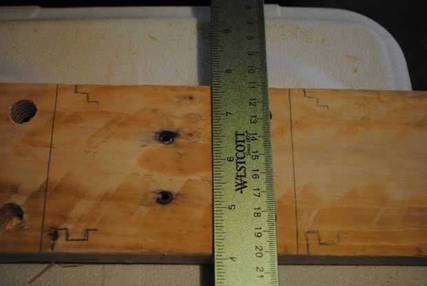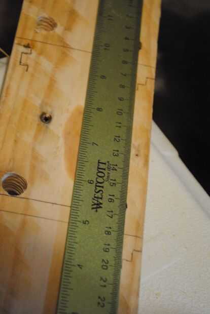 Entonces trazar líneas hacia abajo los lados y la parte inferior para tener una guía para ejecutar a lo largo de se coincida con los agujeros que ha perforado.