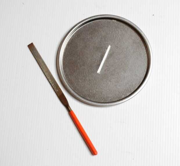 3. una vez que la ranura es lo suficientemente grande, utiliza un pequeño archivo para eliminar cualquiera de los bordes ásperos