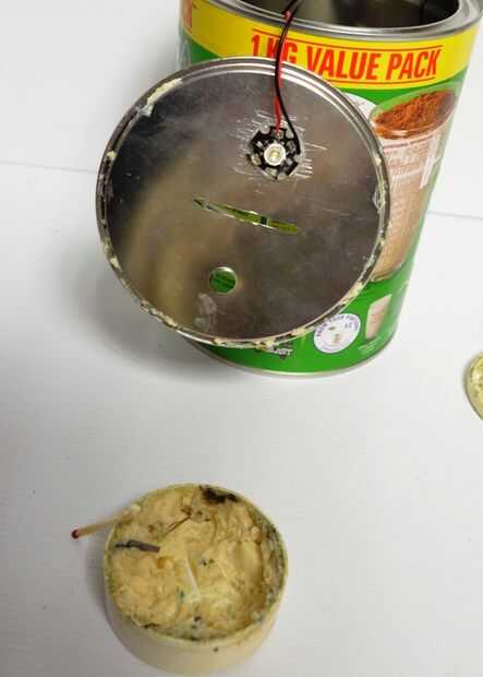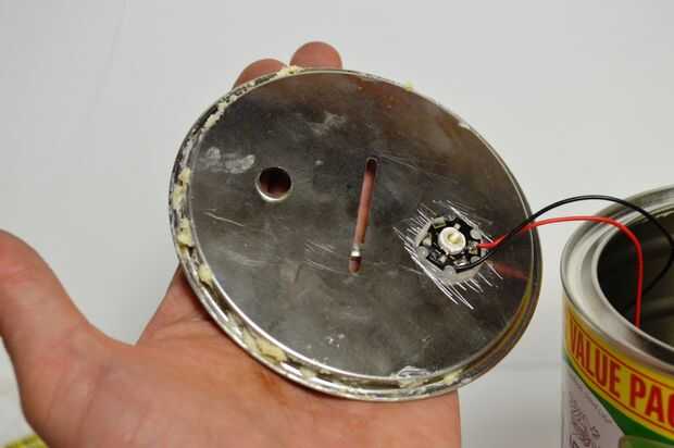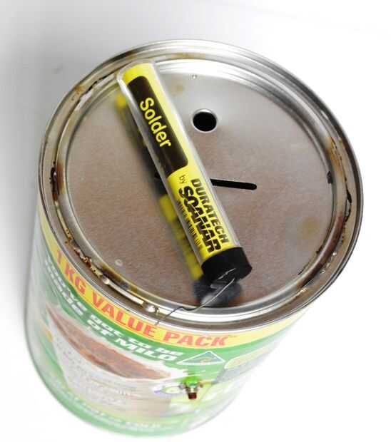 2. a continuación, calentar cuidadosamente el lado de la tapa con un mini soplete y añadir soldadura. No intente mantener el calor en el mismo lugar por mucho tiempo de la lata con blacken. Si esto ocurre, debe ser capaz de eliminar la mayor parte de la misma con un agente de pulido.