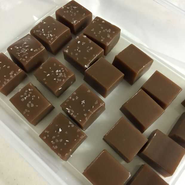 Estos caramelos de chocolate café resultaron increíble así que opté por no para mojar en el chocolate tal como se planeó. Un poco de sal de escamas en la parte superior y estaban para morirse. Esta receta fue un experimento aleatorio con el caramelo de 7 minutos que utilicé para los otros caramelos.