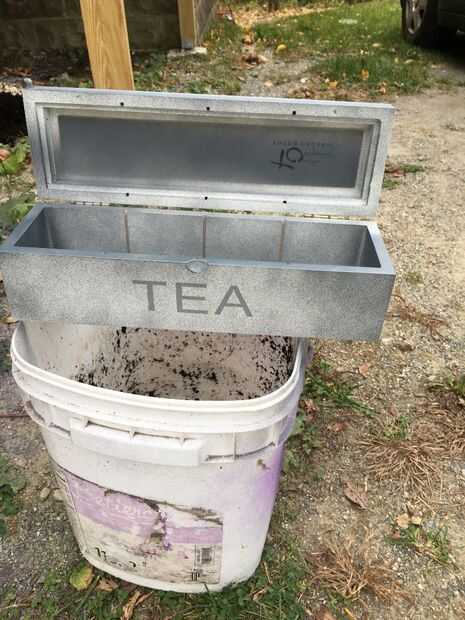 Un tanque de agua para emergencias de una caja de cartón y una bolsa de basura