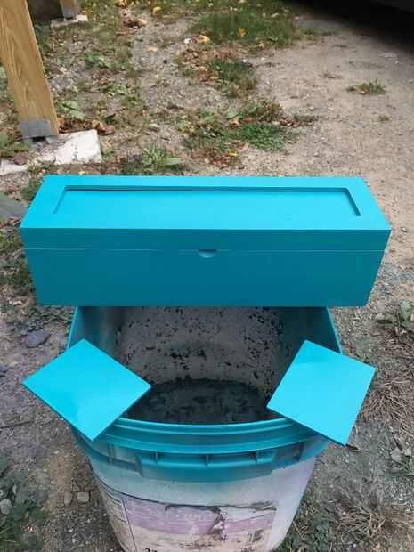Después de haber esperado aproximadamente 1 hora después de la última capa de imprimación, listo pintar el interior y exterior de la caja de la misma manera como lo hizo la cartilla. No importa si tiene el color en el centro, ya que usted va ser encubriendo con pintura de pizarra más adelante. Dar el cuadro de acerca de 2-3 capas y luego dejar que seque durante la noche.