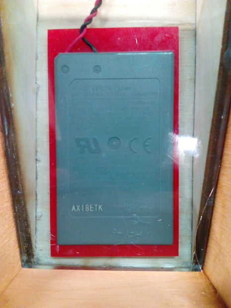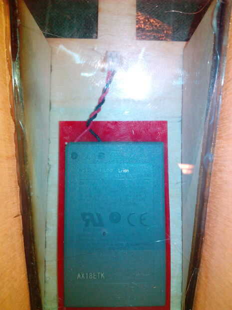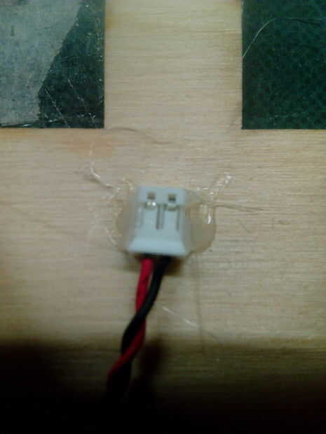 Péguelos madera contrachapada diagonal a los lados del interiores del interior de la pickholder como ves en las fotos. Cuando usted hizo esto pegue la batteryholder de plexiglás en la parte inferior y poner la batería en su lugar. Decidí también pegar el extremo de los cables de la batería como se aprecia en las fotos.