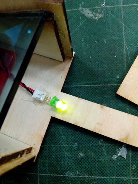 Ahora vamos a hacer un pequeño ajuste a la parte de cierre de la base de sitio interno. He aserrado un pequeño triángulo en la madera contrachapada para el LED a través de él! Una vez que esto sucedió puede pegar a los otros lados!