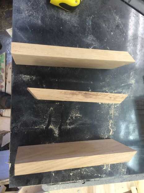 Ahora necesita cortar un ángulo de 45 grados en ambos extremos de la pulgada 7 1/2 pieza y un ángulo de 45 grados en las piezas de 9 pulgadas.