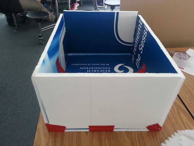 Después de cortar las piezas de Junta de espuma 4, hemos reunido los más o menos para asegurarse de que todas las piezas encajan. También ponemos el cristal en la parte superior para asegurarse de que encaja perfectamente. Usted quiere asegurarse de que el vidrio se adapta perfectamente para que el calor no se escape! Luego, cortamos el cartón para hacer los reflectores de la caja. Usted tendrá que cortar (2) 15" 10" y (2) 20" por 10".