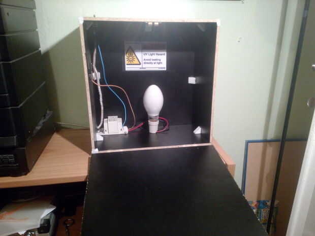 barato y fácil de construir caja de exposición ULTRAVIOLETAMás detalles en: http://kavea.free.fr/index.php?2014/08/05/4-insoleuse-uv-pour-pas-cher