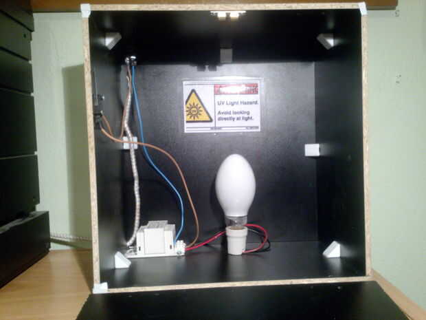 Ahora, desde el interruptor de la puerta un cable va al lastre y de la salida del balasto tomamos un cable para el sostenedor de la lámpara.