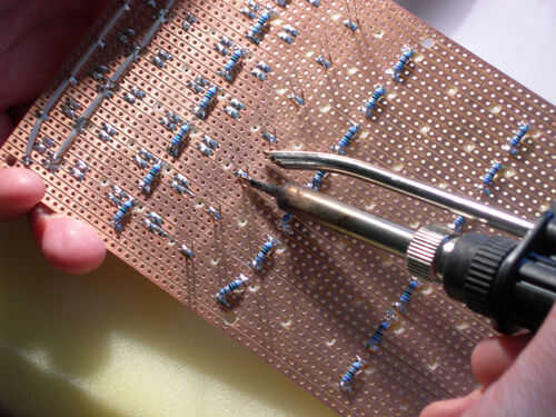 Ahora sostenga la tabla en su mano apoyando un LED con el dedo. Recalentar la soldadura, la soldadura se funde el LED será libre y usted puede mover con el dedo hasta que usted siente es plana contra el tablero. Mantenga durante unos segundos mientras se enfría la soldadura. Repita este paso para cada LED en la fila.