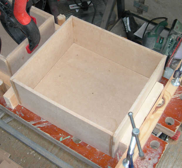 Ahora unir los 4 lados exteriores de la caja principal usando la base como una guía (Asegúrese de que no pegue la base sin embargo). Luego pegue los lados interiores en lugar para que cuando, el delantal quede al ras con el borde y la base es ligeramente ahuecada.