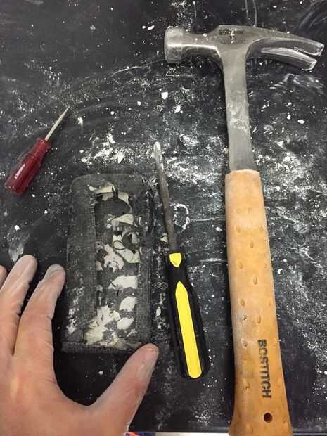 Una vez que ha fijado su epóxido, estás listo para tomar su caso de la aspiradora y quitar el papel encerado y el abrigo de Saran de la fibra de carbono y el molde. Ahora usted puede tener diversión romper aparte el molde; Esto puede hacerse con un martillo y un destornillador de cabeza plana. Batir el destornillador con el martillo y tratar de conseguir tanto como usted puede apagar sin agujeros sobresaliendo en su caso de fibra de carbono. Ser selectivo de donde trabajas como esta puede conseguir desordenada!