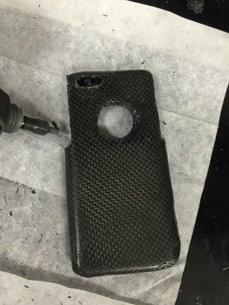 • En este punto que son capaces de dejar mensajes ocultos en la caja del teléfono. Con la punta de la herramienta Dremel, puede inscribir mensajes en la parte interior de su caja del teléfono. Tenga cuidado de no presionar demasiado o ripee aunque al otro lado, pero la herramienta de lijado se ponga áspera la fibra de carbono lo suficiente como para escribir con. Estos mensajes no será aparente normalmente, pero cuando acabada podrá verlos cuando se mira desde el lado mientras que una luz brillante. Es la manera perfecta para inscribir su caja del teléfono para usted mismo o enviar un mensaje si su plan para dar esto como regalo!