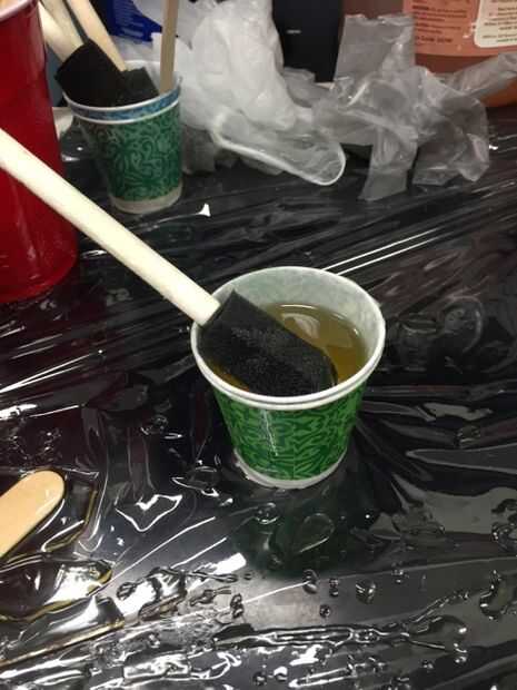 • Mezclar el epoxi brillante de la misma manera como antes, prestando especial atención a las instrucciones de las botellas. Este epoxi debe ser más flexible que la primera y la promesa de un brillante acabado.