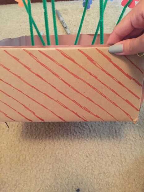 Voila! Ahora tiene su propio cartón flor decorativa caja con el toque creativo de su hijo. Mostrar en su mesa o en una estantería cercana para un estallido de decoración! Su hijo ahora puede decorar la caja usando marcadores/etiquetas engomadas, etc.. El cielo 's el límite aquí!