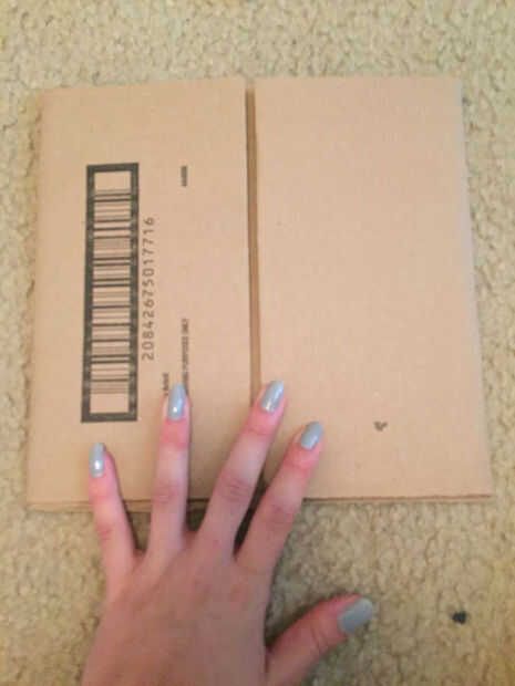 2. doble la cartulina sobre las marcas que usted acaba de hacer. Debería parecerse a una plaza cuando se pliega sobre con dos aletas dobladas en la parte superior.