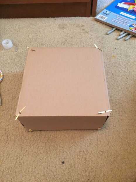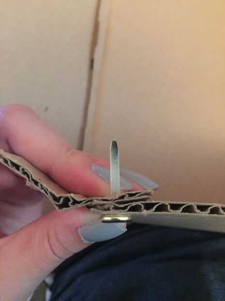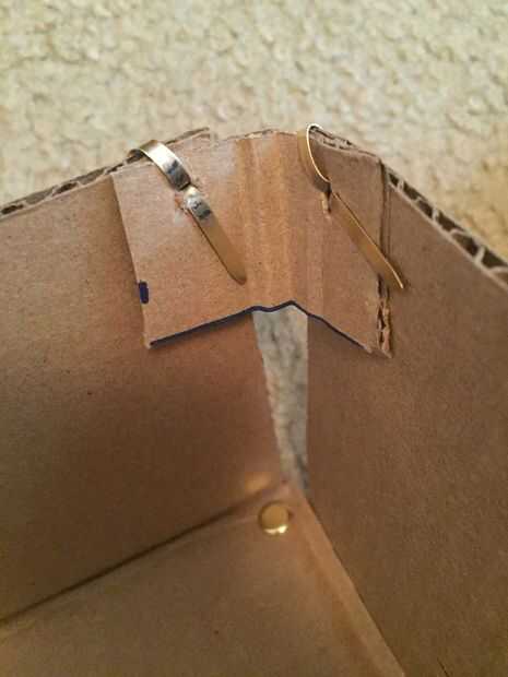 2. use sujetadores de latón para conectar los dos lados a la tira de cartón.