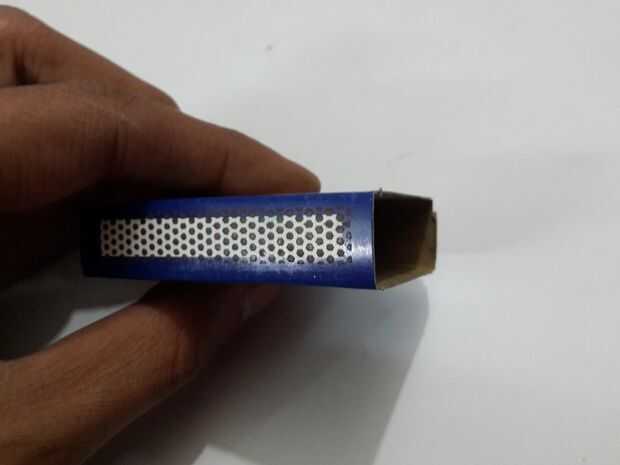 Tomar una caja de fósforos y quite los palillos de fósforo, luego cortar las tiras de ambos de la caja del fósforo mediante el uso de tijeras.