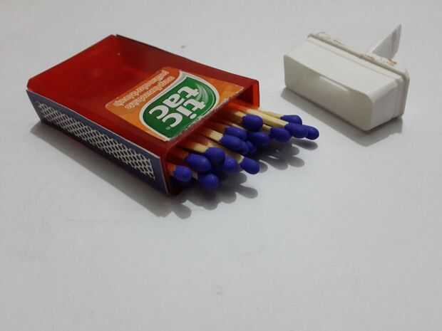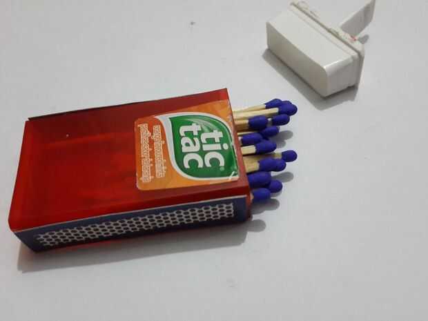 Ahora poner algunos palos de fósforo en la caja de tic tac.