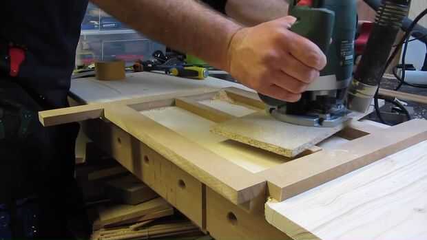 Ahora la parte media debajo de la parte superior de la abrazadera y usarlo como plantilla de router para crear una cavidad en la parte inferior de la parte superior con una broca de plantilla. Yo olvidé este paso y tuve que crear otra plantilla porque ya pegué la parte media a la parte inferior.