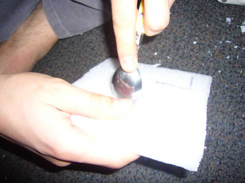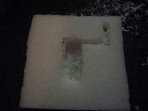 por lo que. empezar a sacar con pala hacia fuera esa espuma de poliestireno. Esto es donde usas la cuchara para realmente sacar un montón de espuma de poliestireno. una vez que lo suficientemente profunda para una batería, parada.
