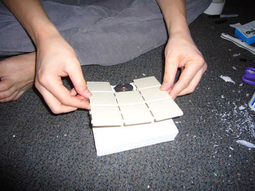 poner pegamento en la parte posterior de los azulejos y ponerlo encima de todo el aparato.