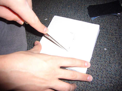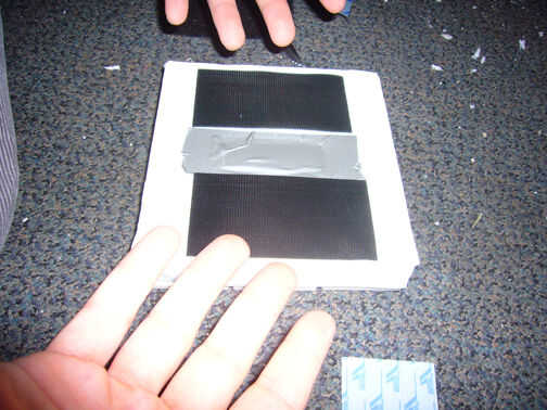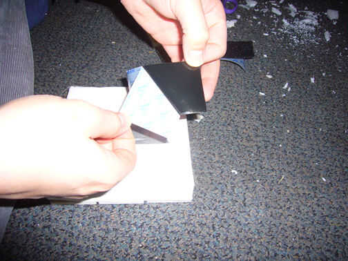 cinta hacia abajo un trozo de cartulina en la parte posterior. Utilizamos cinta de adhesiva blanca.