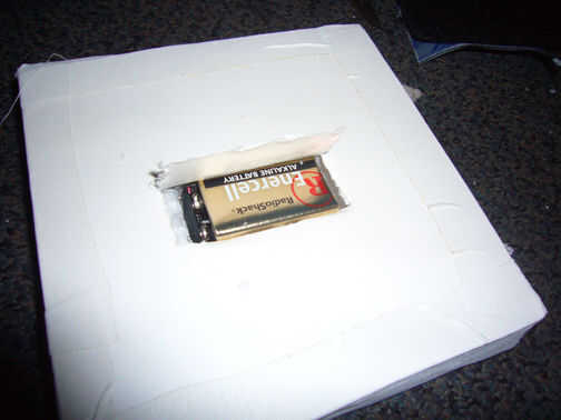 cortar una pestaña en la cartulina sobre ese espacio e Inserte la batería y conectarlo.
