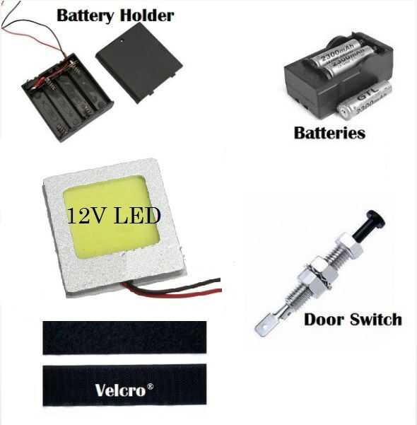 Aquí es lo que solía hacer mi luz guantera portátil. Pueden utilizar baterías diferentes, tensiones, cajas de batería, dependiendo de qué tipo de leds que va a utilizar. Tenía una tira de led de 12v, así que utiliza una configuración para unos 11,1 voltios, utilizando baterías recargables.