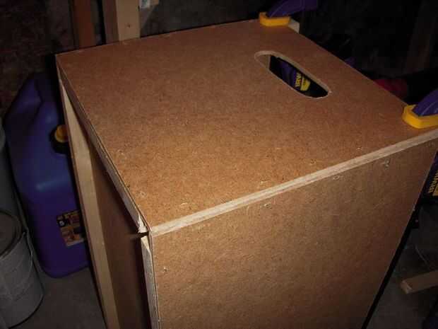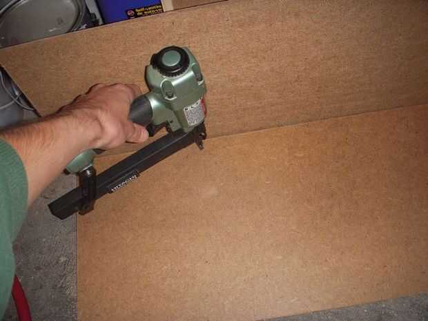 Ahora pegamento y grapas el bloqueo del soporte vertical, recuerda utilizar las pinzas para que pueda aplicar las grapas. También asegúrese de que los soportes verticales estén al ras con el lado, así como tocar el panel inferior.