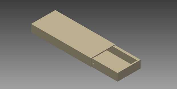 La tapa contiene una cresta que encaja con el guión en los lados del cuerpo de la caja de lápiz. Esto permite que la tapa a presión de cierre. La larga cresta de 4 pulgadas permite que la tapa se deslice dentro y fuera del guión largo de 4 pulg. Además, el guión está centrado entre la parte superior y la parte inferior de la cuerpo de la caja de lápiz. Esto permite que la tapa encajar perfectamente cuando ambos abierto y cerrado y permite la caja de lápiz tener tan poco espacio como sea posible. El diseño también es simple y no contiene partes de difícil-a-print.