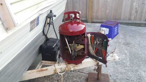 Estas cajas de plástico están disponibles en ventas de garage y swap meets. Éste contenía un kit de taladro inalámbrico nuevo. Generalmente venden para cerca de $1 o $2 cada una. Tengo unos 10 de ellos. Mantener diferentes herramientas y suministros
