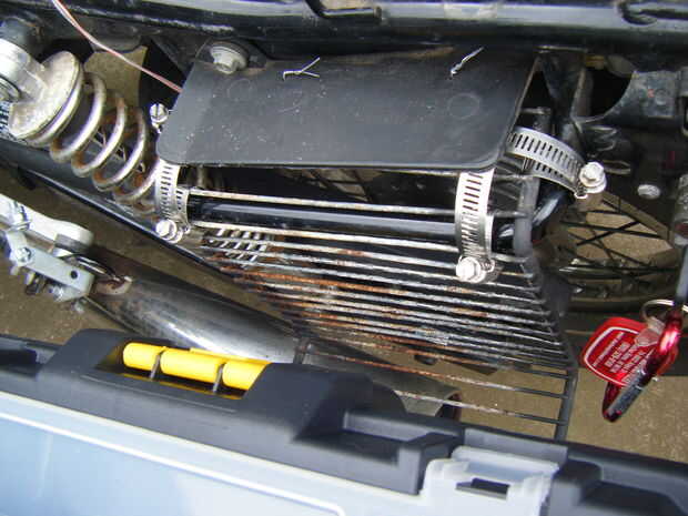 Utilicé 4 abrazaderas para sujetar a la barra pero por supuesto, a menos que tenga la misma moto, que tendrás que encontrar un método alternativo.