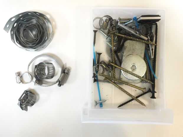 • • Abrazaderas de la manguera Mantener 4 o 5 alrededor. Son como zip lazos, pero son reutilizables y muy fuerte. Estructuralmente, puede hacer cosas en una sola cosa en una permanente, ajustable, y modo a prueba de herrumbre. • $1,4