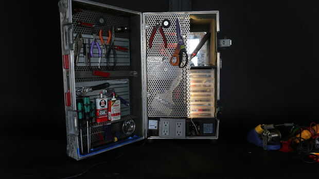 - Iluminación LED • tengo una tira de luces LED de 12v que funciona a lo largo del divisor de la caja. Proporciona suficiente luz para trabajar en situaciones de emergencia y luz suplemental a leer las etiquetas al trabajar normalmente. Conecto a la corriente supply• $9