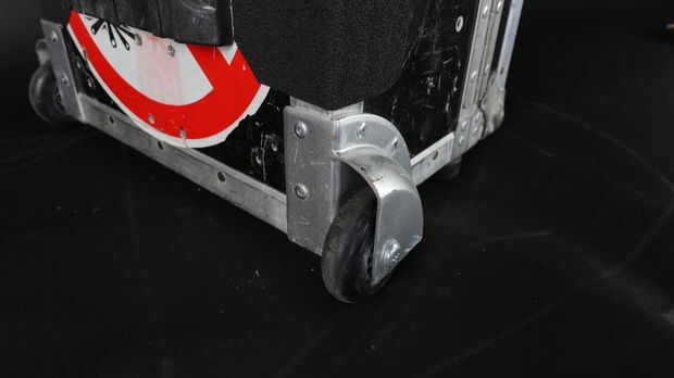 Esa cosa pesa 70 libras (32kg) cuando esté lleno. Sin ruedas, es una cosa horrible viajar con. Lo tuve por 3 años sin ruedas. Cuando agregó, es un cambiador de juego. Compré un juego de ruedas en línea, así como un manija extensible. Los que he comprado ya no están disponibles, pero los enlaces están cercanos. Ese sitio tiene todo que lo necesario para construir su propio caso de camino, que sería una manera increíble para ir. Ahora es una moda de rolling equipaje! También añadí cinta del apretón a los bordes que apriete cuando yo oso-abrazo a la bestia en y fuera de la mesa. Hace un pesado mucho más fácil, pero todavía bastante. Trato de Ronco tanto como sea posible para que la gente sabe que estoy trabajando duro. Eso es cómo le pagan más, estratégica gruñidos.